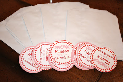 I bought some cute bags from the store and filled them with gumballs and hershey kisses. I made up some printable tags to attach to the front. I folded the top down and attached my tags.