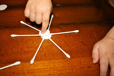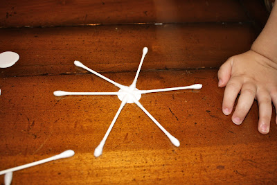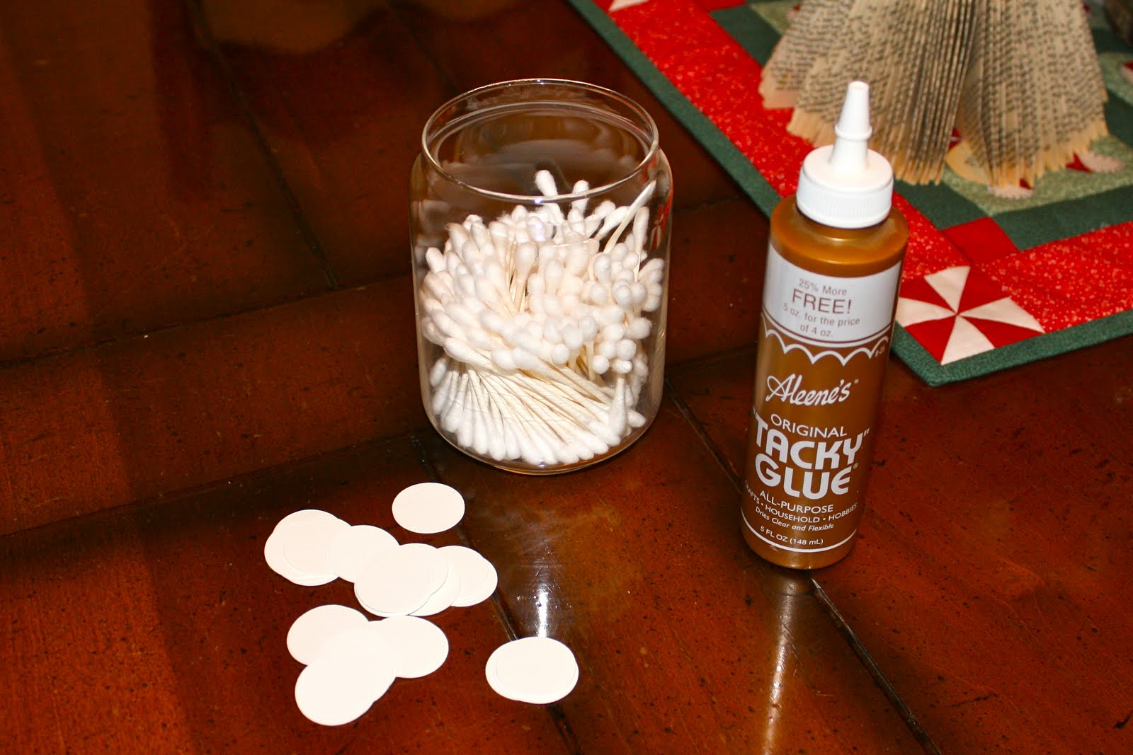 Awhile back I got a great deal from Amazon on Q-tips. We have a LOT of Q-tips at our house. With all these extra q-tips, I decided we could use them in a craft project. I originally wanted to make a santa or snowman with cotton balls, but I actually don’t have any cotton balls at my house right now. Maybe we can plan on that for next year!