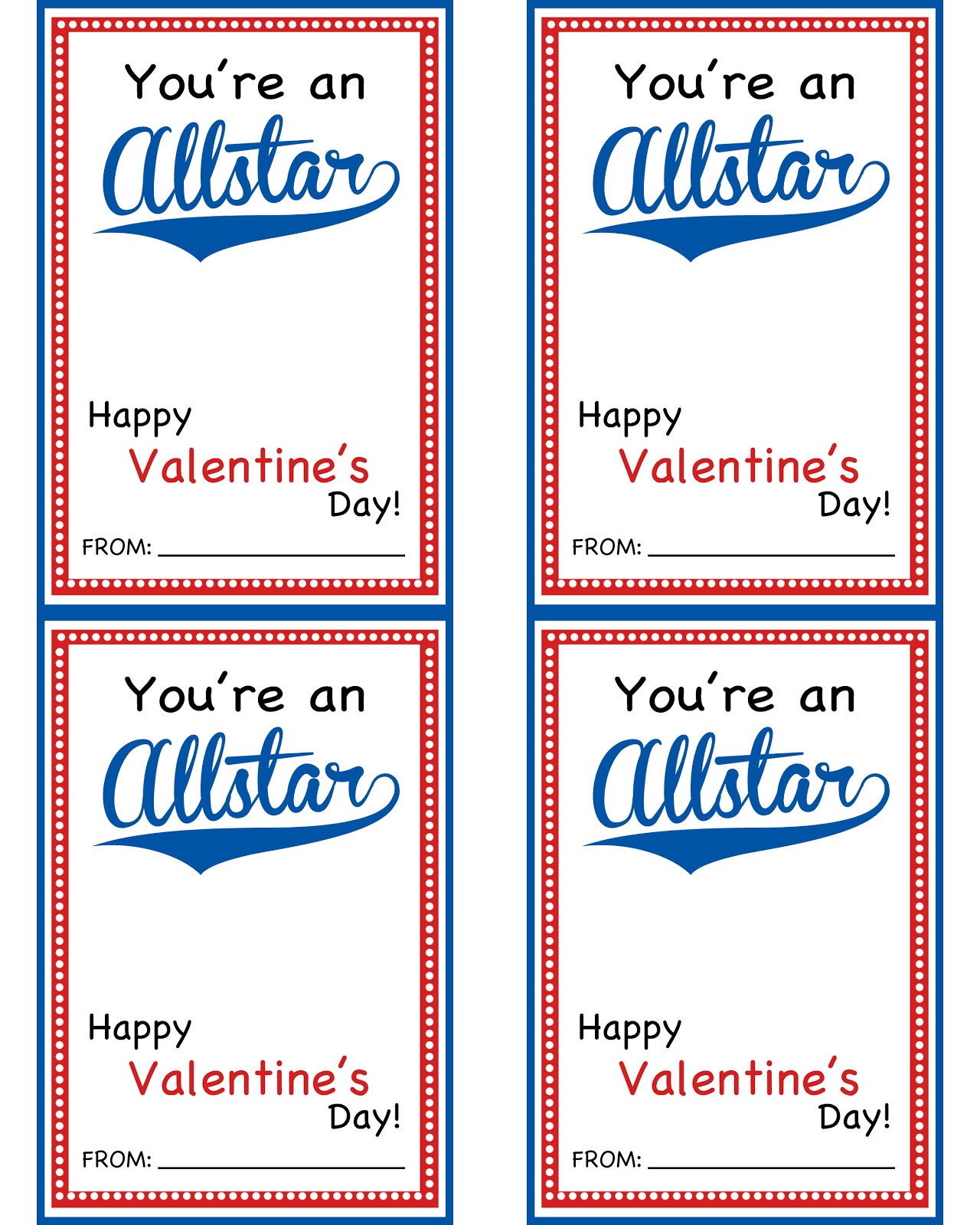 All of these Valentines print 4 cards to an 8.5 x 11 piece of card stock