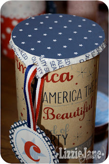 Then I traced the lid onto scrapbook paper and cut out the circle to cover the top and then put the lid back on.