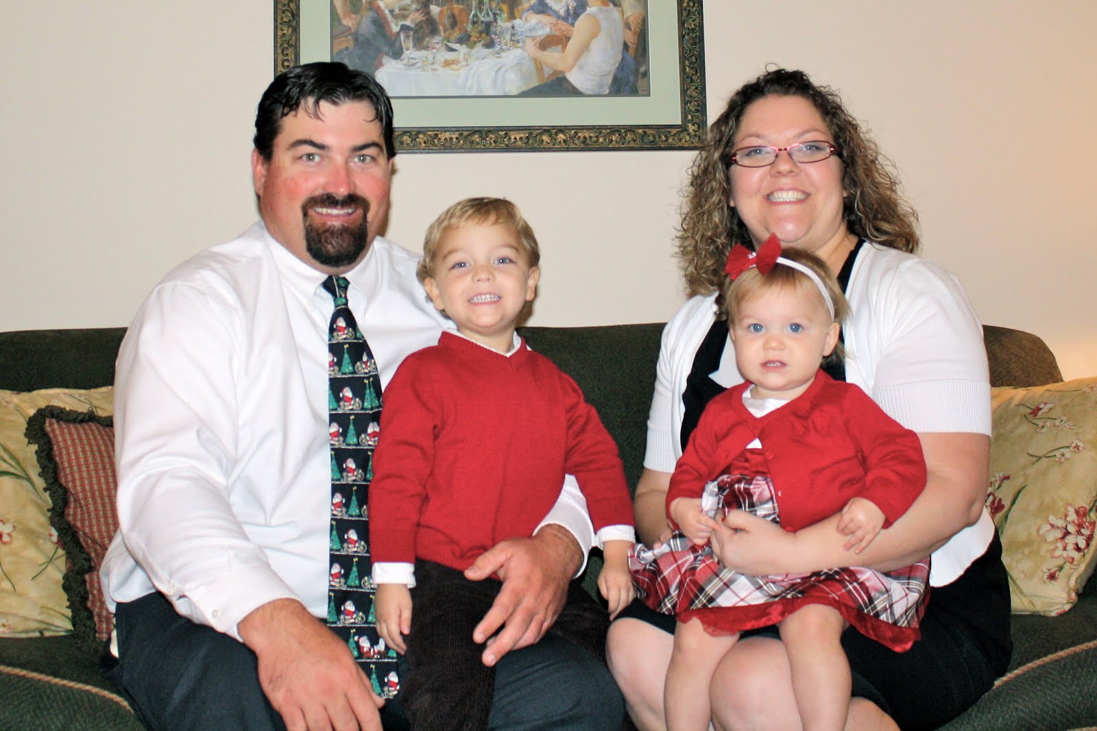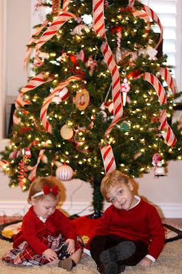 While the kids were dressed in their new Christmas outfits, we needed to get a picture in front of the tree. Not the best picture, but still show off their cuteness!! (no bias here!)
