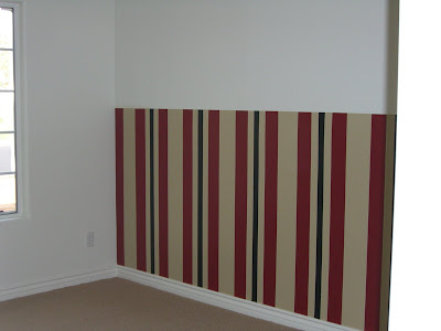 And lastly I want to finish our little girls room so by the end of 2012 she is in a big girl bed. We were going to have a toy/game room that I had painted one wall with stripes. Now I have decided I want to repaint it and find some furniture on craig’s list and at yard sales that I can fix up and create something special for little miss. Here is the before picture and as I attack different aspects of this room I will post progress. I’m still not sure how it will come together, but I have 12 months to figure it out!!