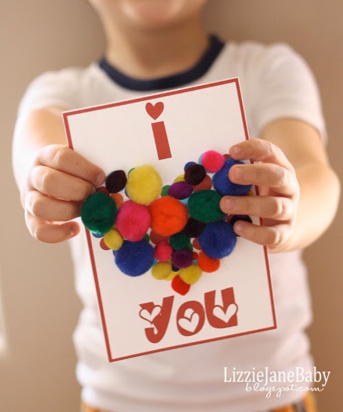 I created a printable as kind of a guide to help the kids know where to glue the pom poms. (Or just use the printable as a card it’s self!) I wanted to make sure and include a not so girly one in case someone is very particular about the color options.