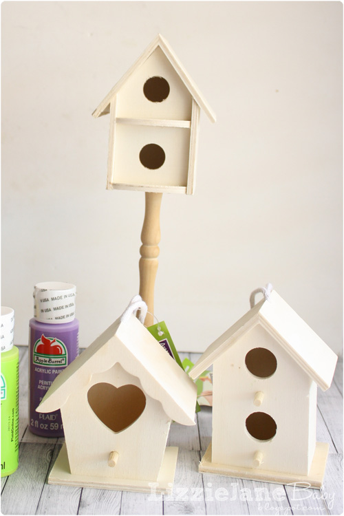 While we were at the craft store we spotted these fun bird houses and I let the kids pick out which one they would want to paint with our new supplies.