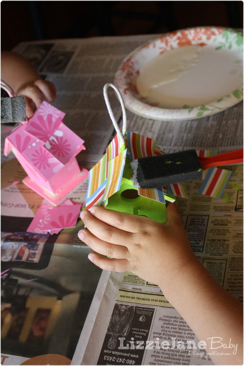 I let them each pick out the color they wanted to use for their bird house and just let them have at it.