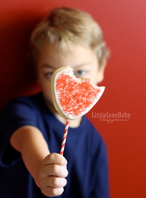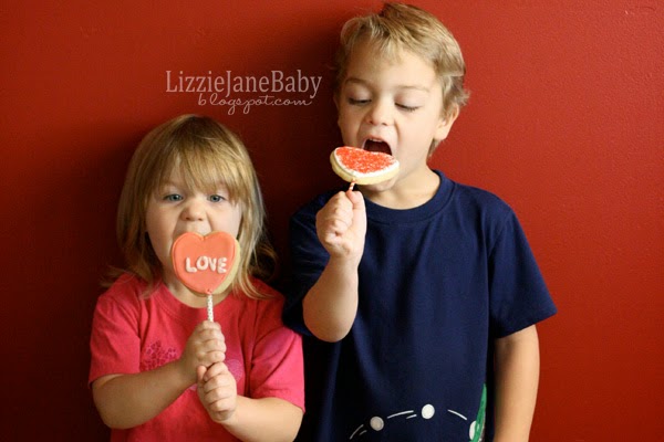 Cookies on a stick are the only way to go. Those are the cookies my kids wanted to eat. Can you tell they were excited to bite those cookies! 🙂 This picture cracks me up. They were done with me taking pictures of the cookies, they just wanted to eat them already!