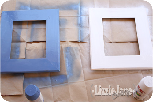 I laid out some brown paper bags on the back porch and stuck some push pins in the backs of the frames so that when I laid they down, they wouldn’t be directly on the paper bags.