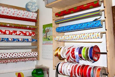 This time we made it a little deeper, to hold the rolls of ribbon better, and added a shelf at the top to store all those bags, boxes and tissue paper.